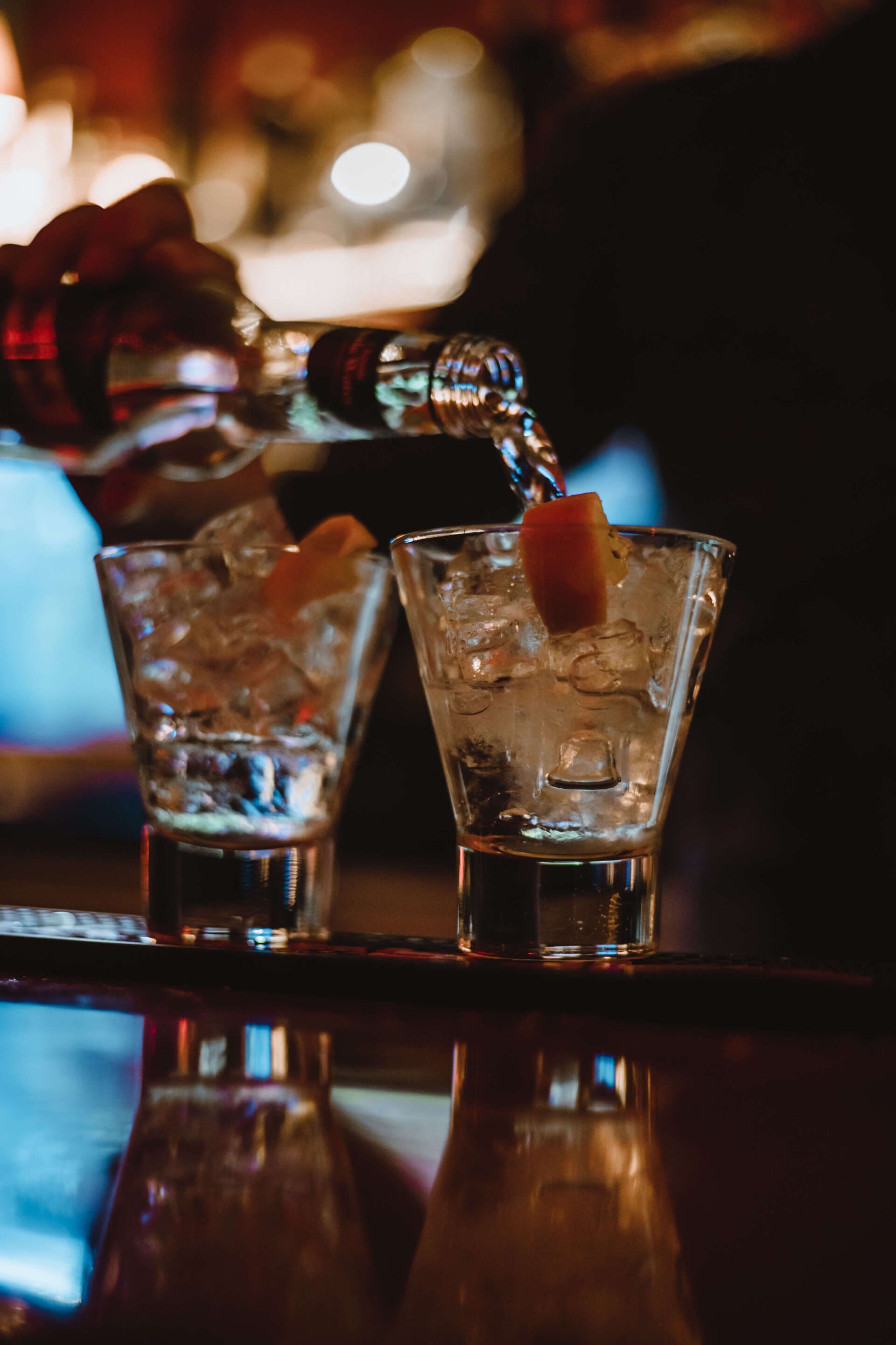 Old Fashioned: Whisky or rum served stirred over ice with bitters, orange zest and a sugar cube